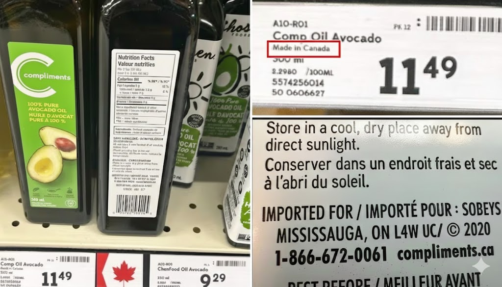அங்கு இறக்குமதி செய்யப்பட்ட அவகாடோ எண்ணெய் (Avocado Oil), கனடா தயாரிப்பு என விளம்பரப்படுத்தப்பட்டுள்ளது.